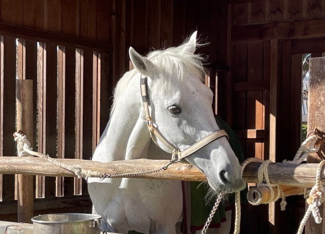 神山号はサラブレッドで、かつてJRAで競走馬「メダイヨン」として活躍した神馬さんです。