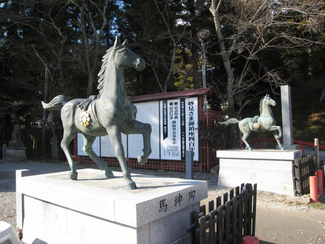 - 神馬の像や絵は神社の守護としての役割も担っている